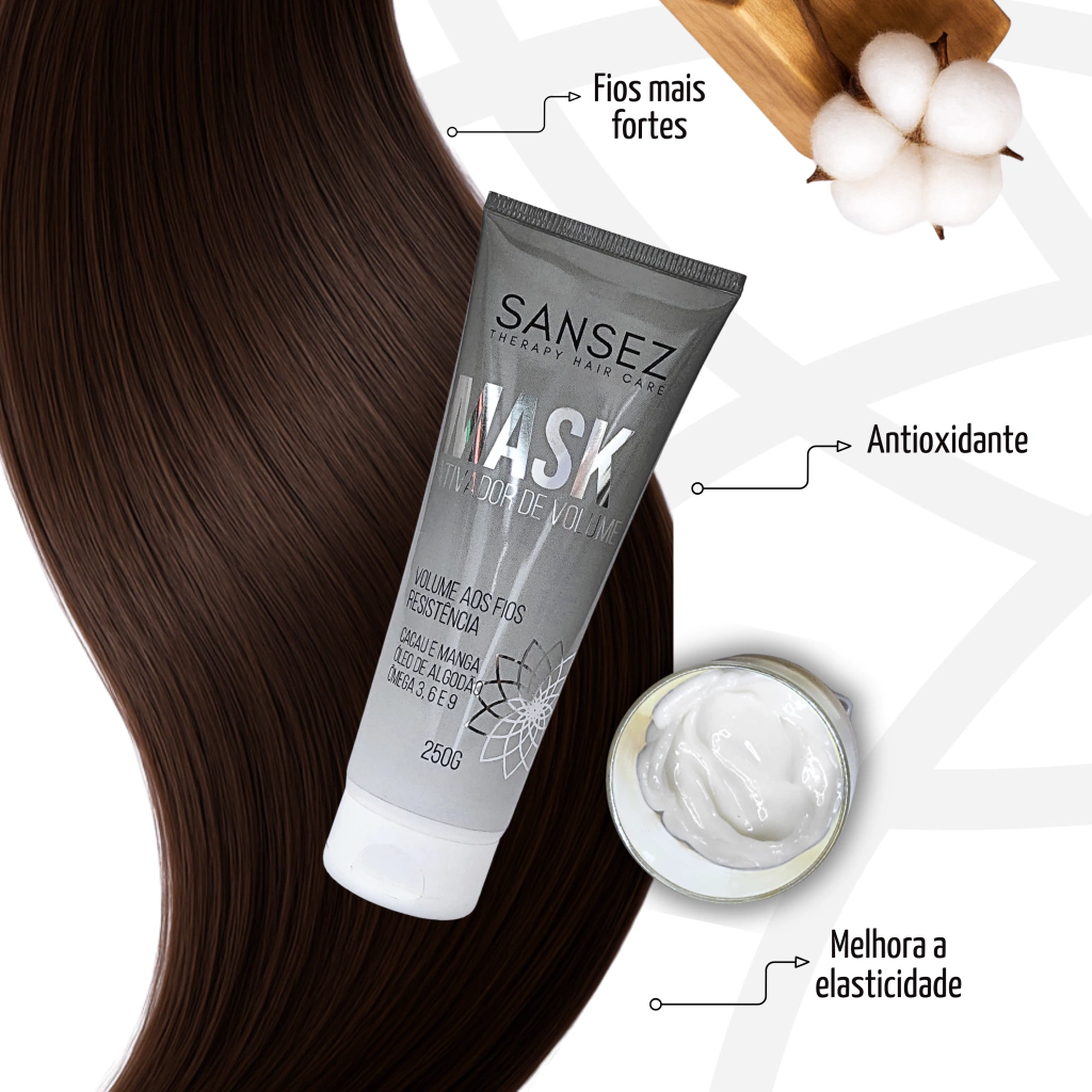 A Dupla IMPACTO! reúne o Tônico Sansez 9 em 1 e a Mask Ativadora de Volume, ideal para quem deseja fios encorpados e resistentes. O tônico estimula o crescimento saudável e reduz a queda, enquanto a máscara hidrata, fortalece e encorpa os fios, proporcionando corpo, vitalidade e resistência.