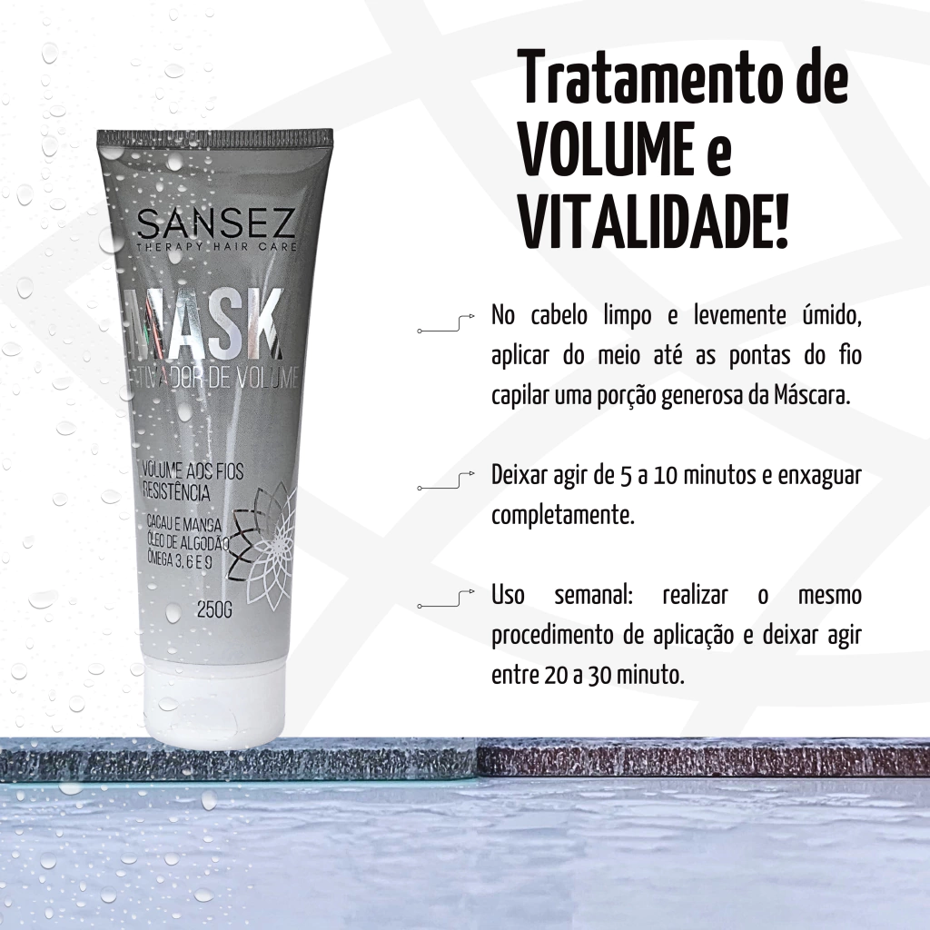 Sansez Mask Ativadora de Volume – O tratamento que transforma fios finos em cabelos volumosos e radiantes.
