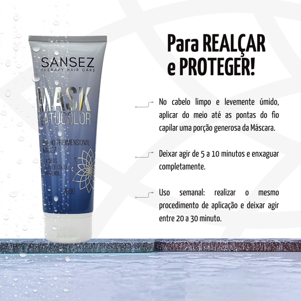 Se o seu cabelo perdeu brilho, maciez e vitalidade, a Sansez Mask NatuColor é o cuidado indispensável para resgatar a cor, a saúde e a luminosidade natural dos fios.